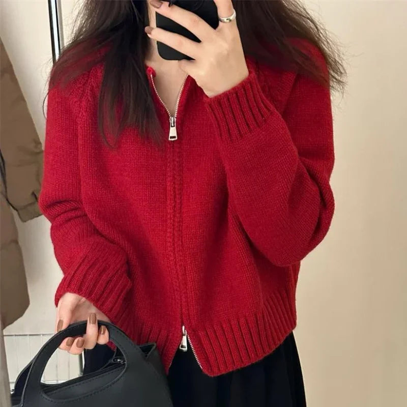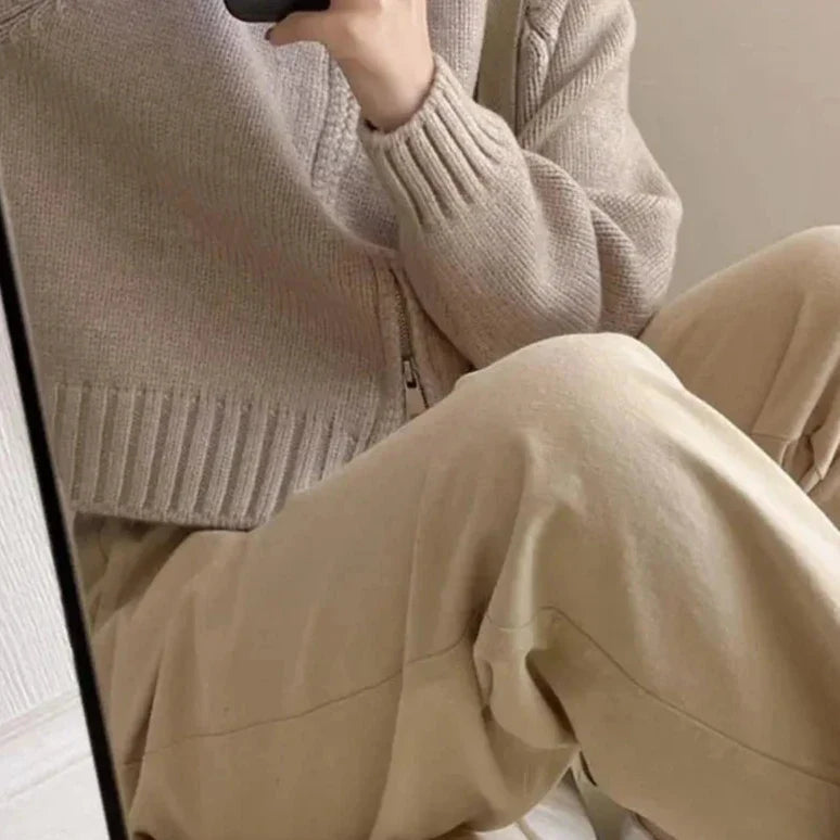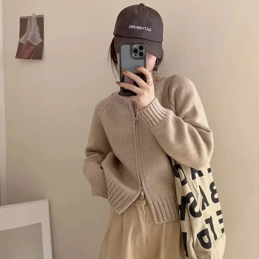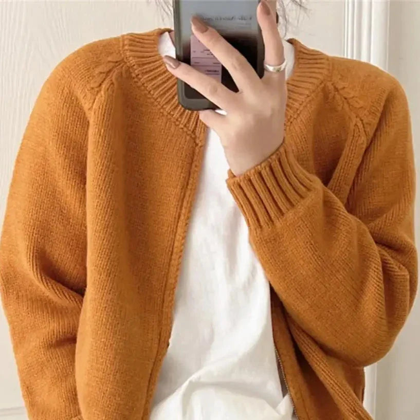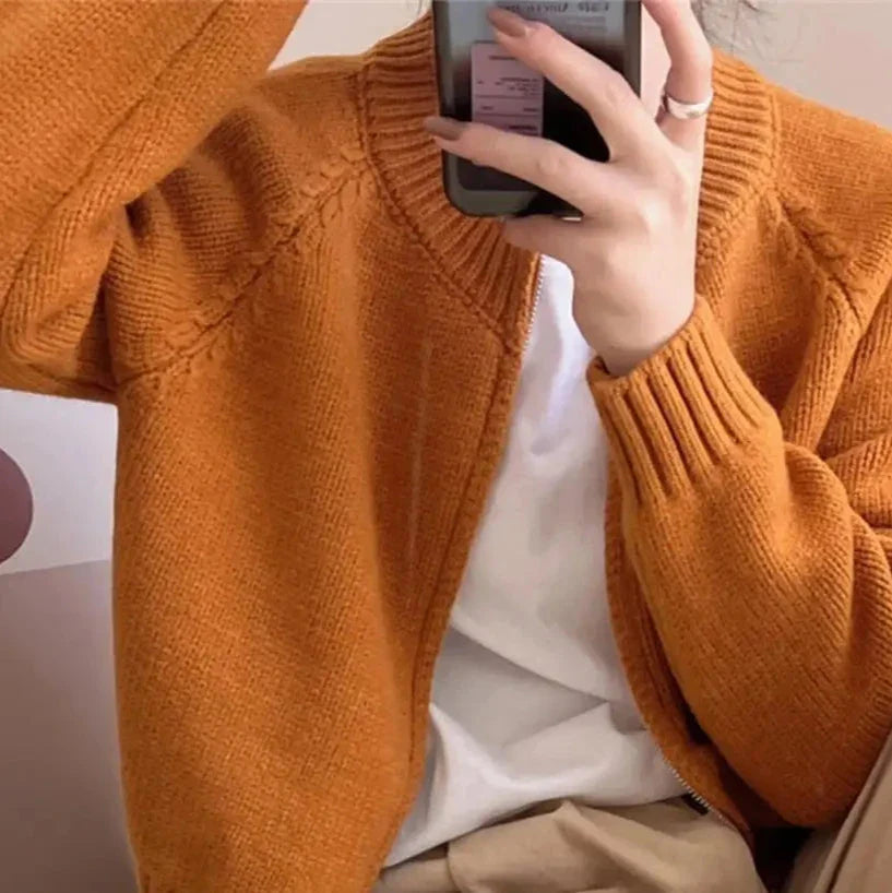 Introducing the Cyra Comfort Zip-Up Cardigan by Bella Chix - the perfect mix of style and comfort. This sweater cardigan offers a cozy fit that will keep you warm and stylish all season long. With its easy zip-up design. it's the perfect addition to any outfit. Upgrade your wardrobe with Cyra today!