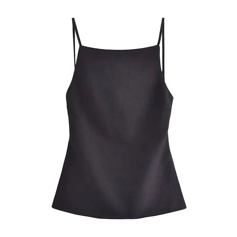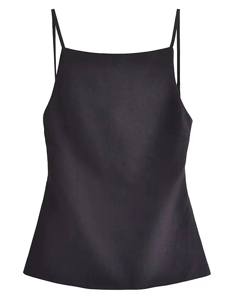 Design: High-street style solid-colored camisole top with a backless design and lace-up detailing for a bold. trendy look.
