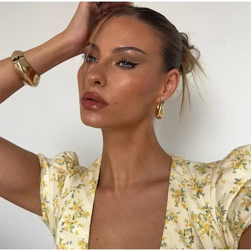 Add a touch of zest to your wardrobe with Bella Chix's Lemon Bloom V-Neck Mini Dress. Featuring short puff sleeves. a pleated design. and a deep V neck. this A-line mini dress is perfect for any occasion. Show off your playful and flirty side in this unique and stylish piece!