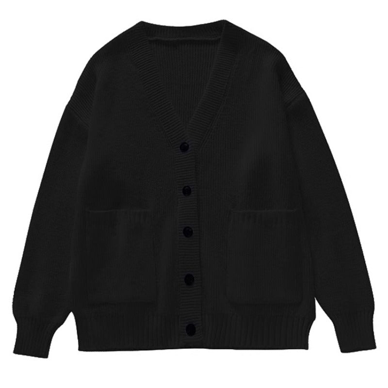 Design: A long. loose-fit knit cardigan featuring a button-down front. V-neckline. and full-length sleeves for a timeless and versatile look.