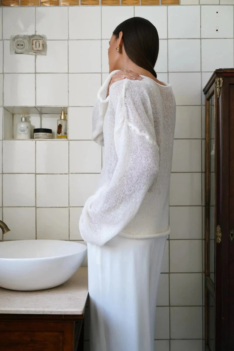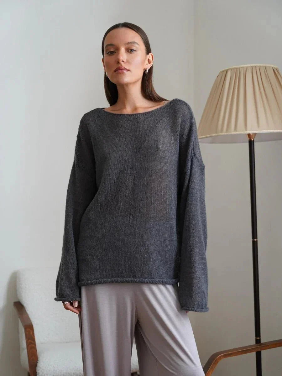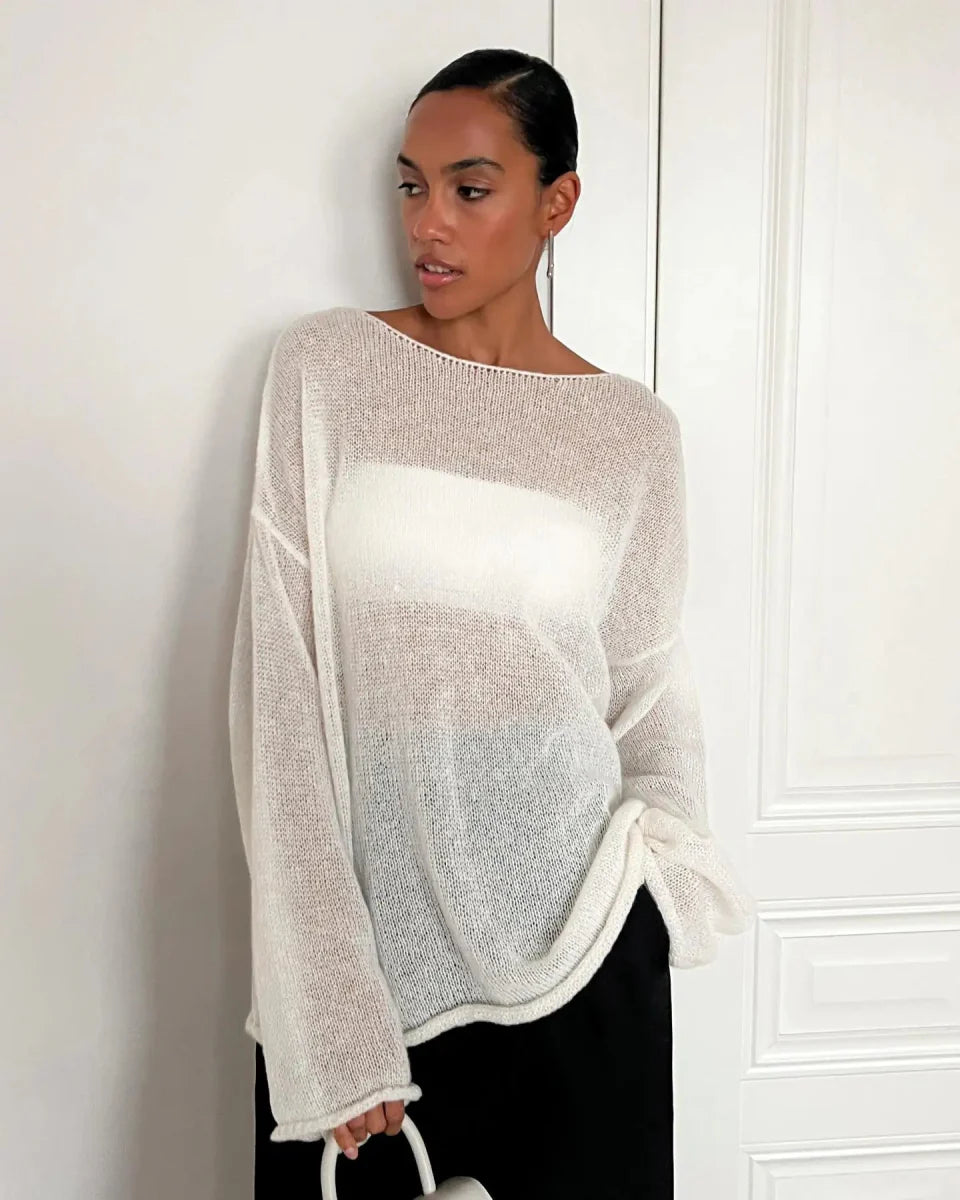 Design: A lightweight. loose-fitting sweater with a relaxed silhouette and solid color design. Featuring full-length sleeves and a soft. breathable texture. it's perfect for layering during transitional seasons.