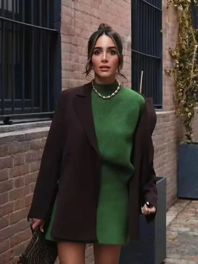Stay cozy in style with Bella Chix's Neema Knitted A Line Mini Skirt Set. Featuring a long sleeve O neck sweater pullover and slim A-line mini skirt. this set will elevate your winter wardrobe. Perfect for pairing with boots for a trendy. yet comfortable look. Knit to impress!