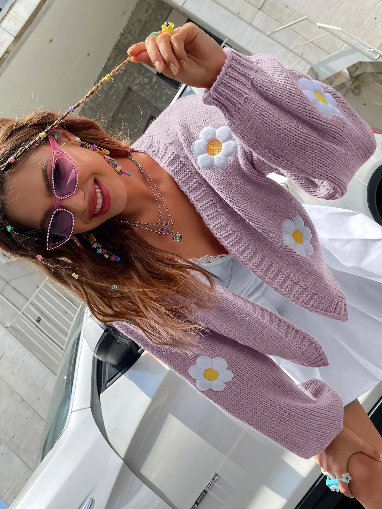 A flower-embellished treat with lantern sleeves. the Open Meadow Floral Cardigan by Bella Chix will give you your daily dose of sweet spring vibes. Wearing this sweater cardigan will have you feeling like you're floating in a meadow with butterflies and birds! It's a must-have to brighten up your wardrobe.