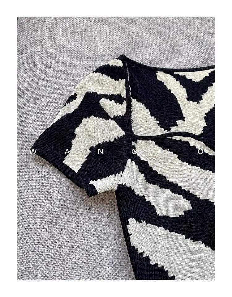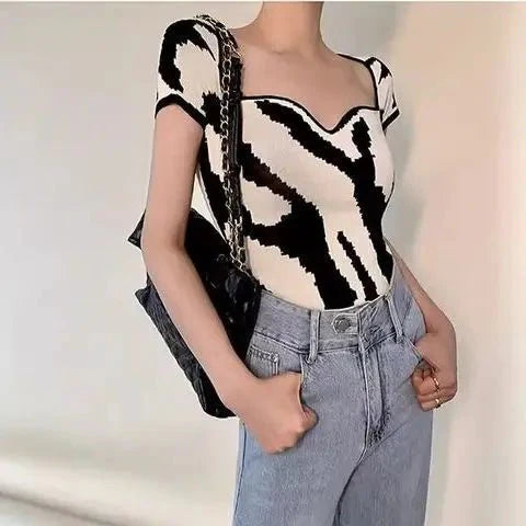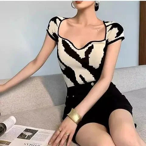Elevate your casual wardrobe with this patchwork knitting short sleeve top. Featuring a solid pattern and high stretch for a comfortable fit. this versatile blended fabric top is perfect for effortless styling on warm days.
