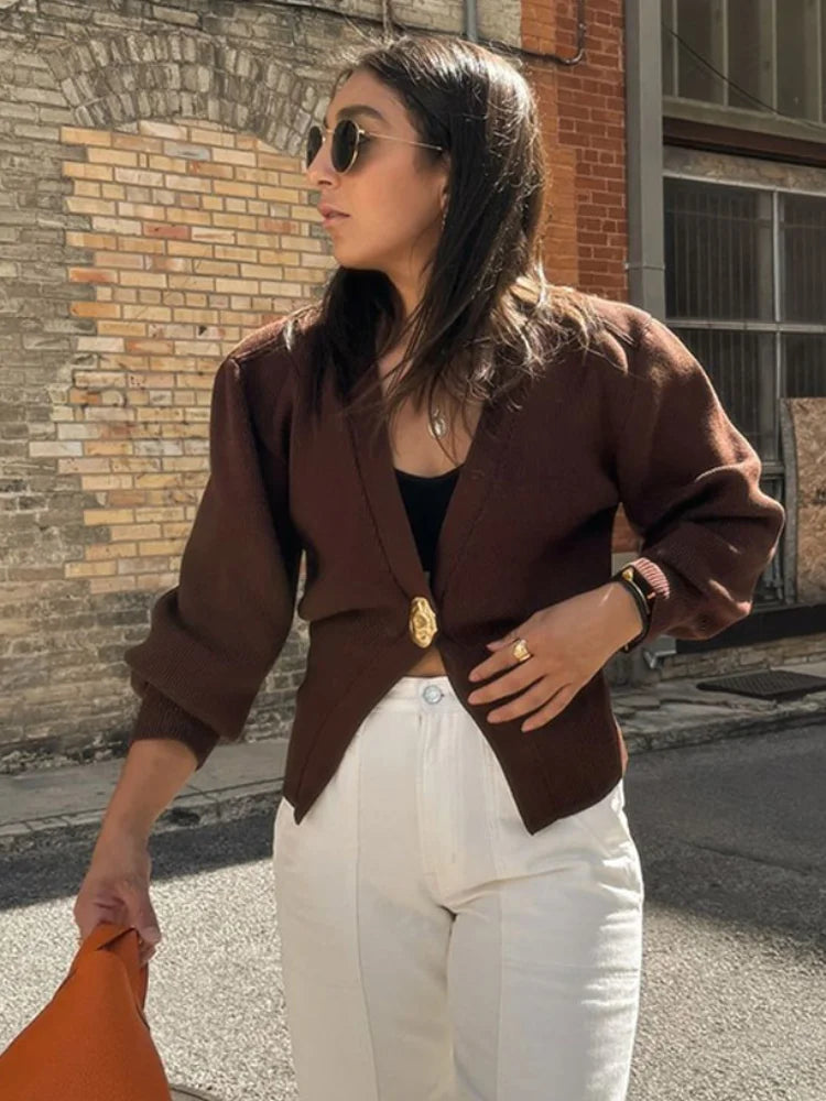 Wrap yourself up in style with Bella Chix's Rhode Isle V Neck Knitted Cardigan. The playful V-neck design and cozy knitted fabric will keep you warm and stylish. Perfect for any occasion. this cardigan is a must-have addition to your wardrobe. (Warning: may cause excessive compliments!)