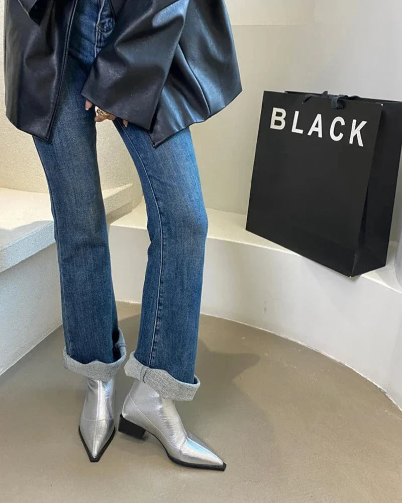 These San Fran Ankle Boots by Bella Chix are no ordinary pair. With a pointed toe and thick heel. they'll add some edge to any outfit. Made from soft leather. these ankle boots are perfect for a night out or a day at the office. Say bye-bye to boring footwear. and hello to these stylish and comfortable booties!