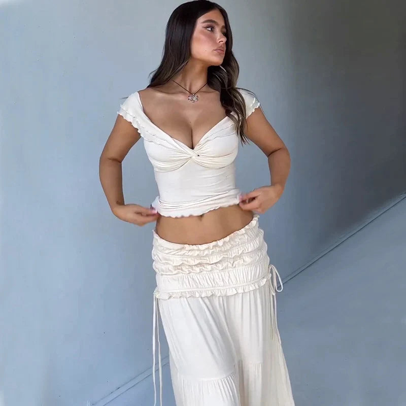 Get ready for some fun in the sun with Bella Chix's Seashell Chic Skirt Set. This summer essential features a crop top and skirt set. perfect for any beach day or vacation. Soak up the sun and stay stylish in this summer must-have. (Don't forget your sunscreen!)