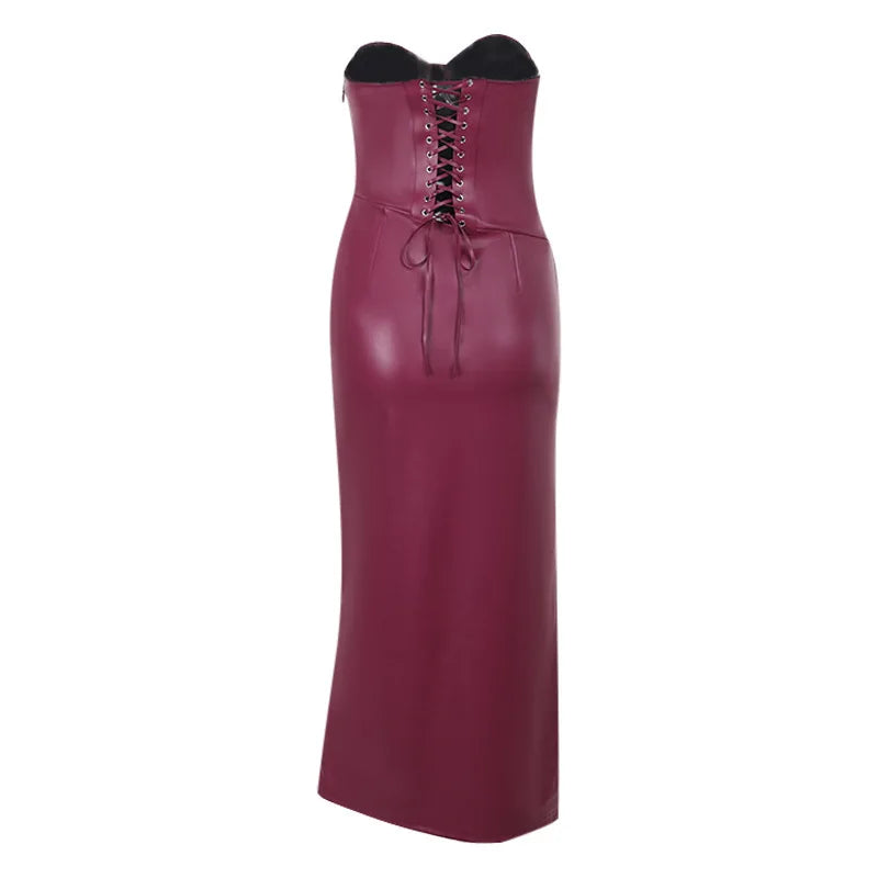 Unleash passion and style with Bella Chix's She's Passionate Strapless Midi Dress. Made with smooth and sleek PU Leather. this dress is both strapless and backless for a bold and sexy look. Perfect for a night out or a special occasion. this dress will have all eyes on you.