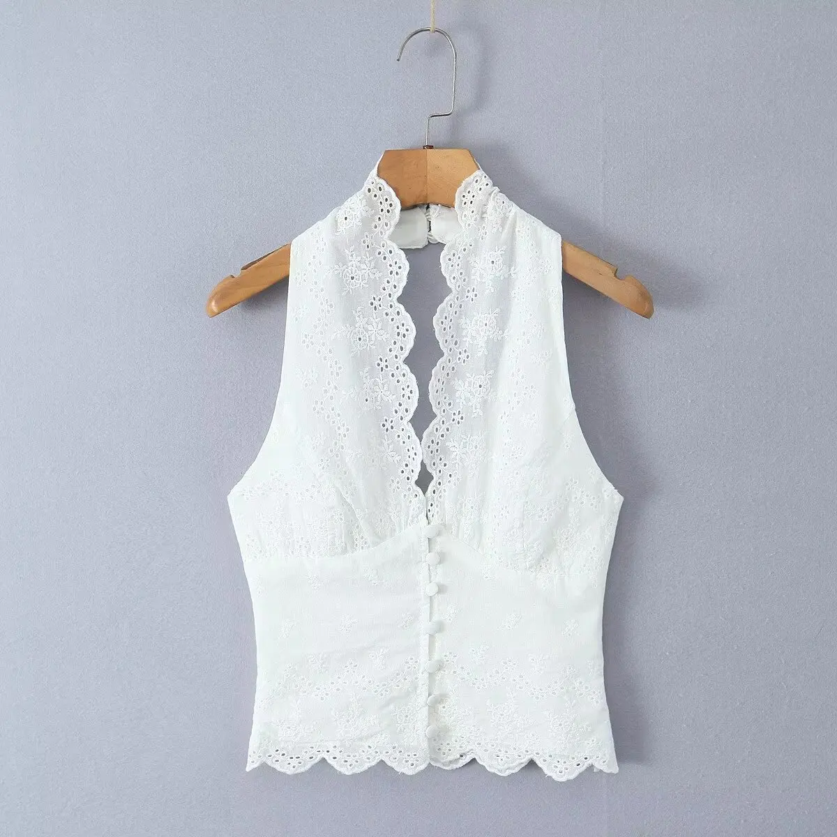 Design: A sleek and breathable top featuring a minimalist backless design. solid color finish. and a flattering V-neckline. Ideal for layering or standalone wear in hot weather.