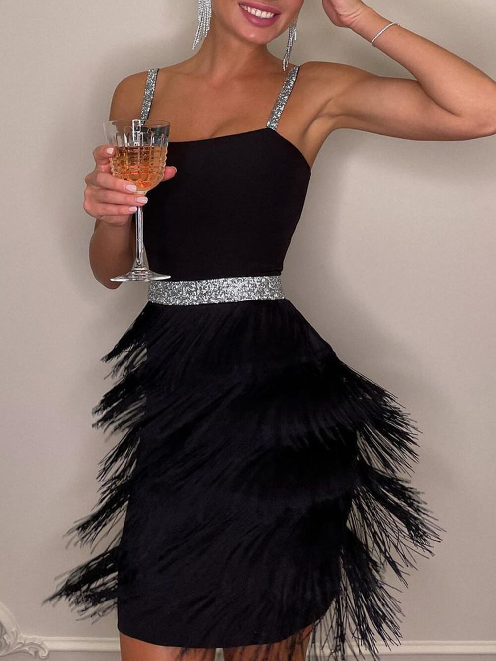 Pair it with heels and statement jewelry for a glamorous evening look. or dress it down with sandals for a more relaxed vibe. However you choose to style it. our Suspender Fringe Mini Dress is guaranteed to make you feel confident. stylish. and ready to take on the night.