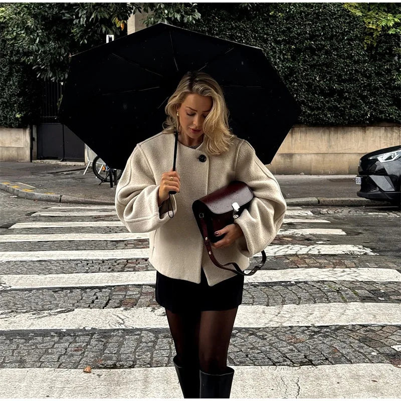 Stay cozy and stylish in Bella Chix's Tara O Neck Woolen Coat! This one-button. long sleeve coat features an O-neck and convenient pockets. Perfect for chilly weather. this coat will keep you warm while adding a touch of elegance to any outfit.