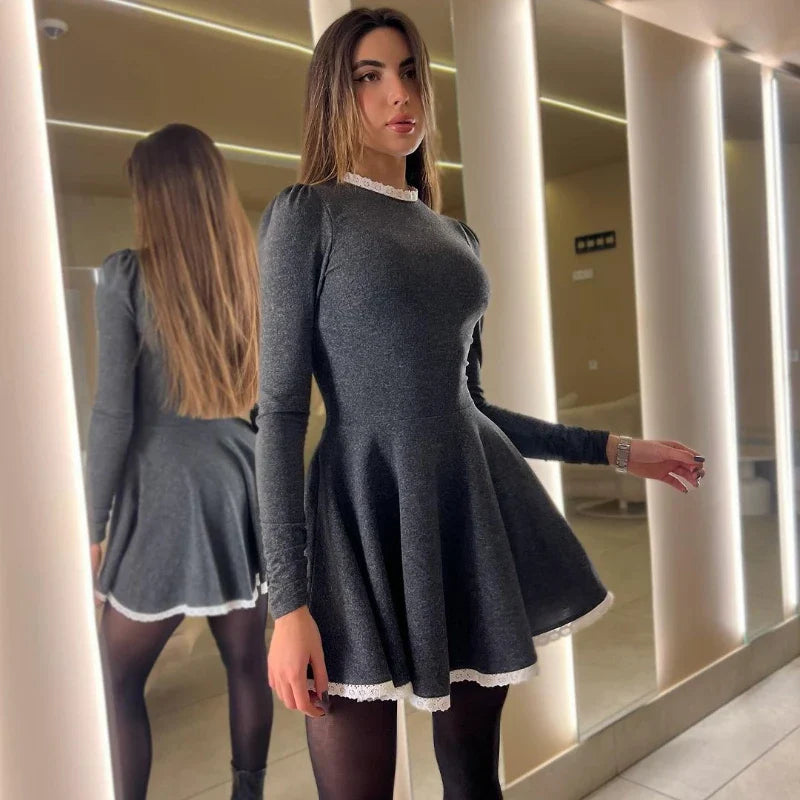 Get ready to turn heads in the Tianna Bubbly Lace Mini Dress by Bella Chix 💃 Retro-inspired and made with beautiful lace. this dress features a playful splice design and full sleeves for added drama. Add a touch of vintage charm to your wardrobe with this mini dress!