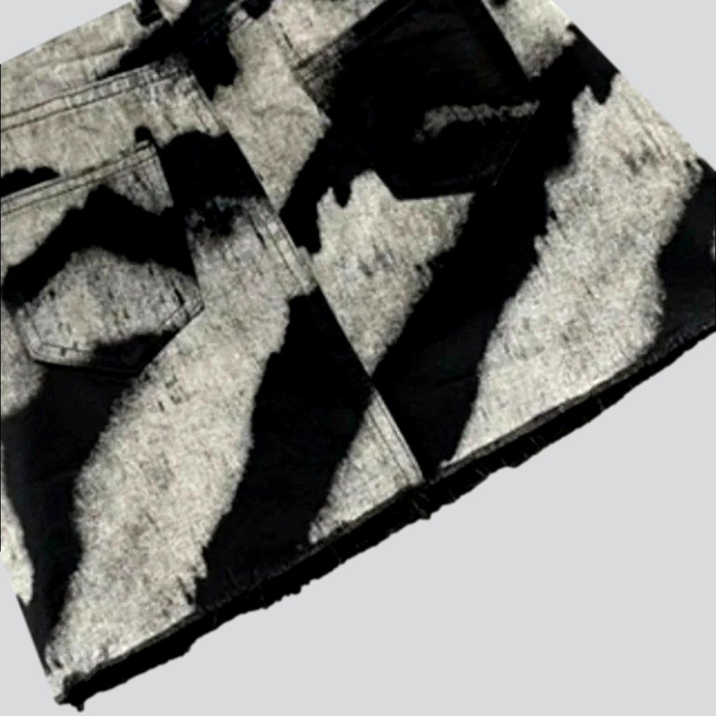 Be bold and stylish this 2023 Spring-Summer season with our unique tie-dyed vintage print denim skirt! Crafted with a mid-waist fit. mini length. and a zipper & button closure. this street-style staple is a timeless classic that will add a chic edge to every look.
