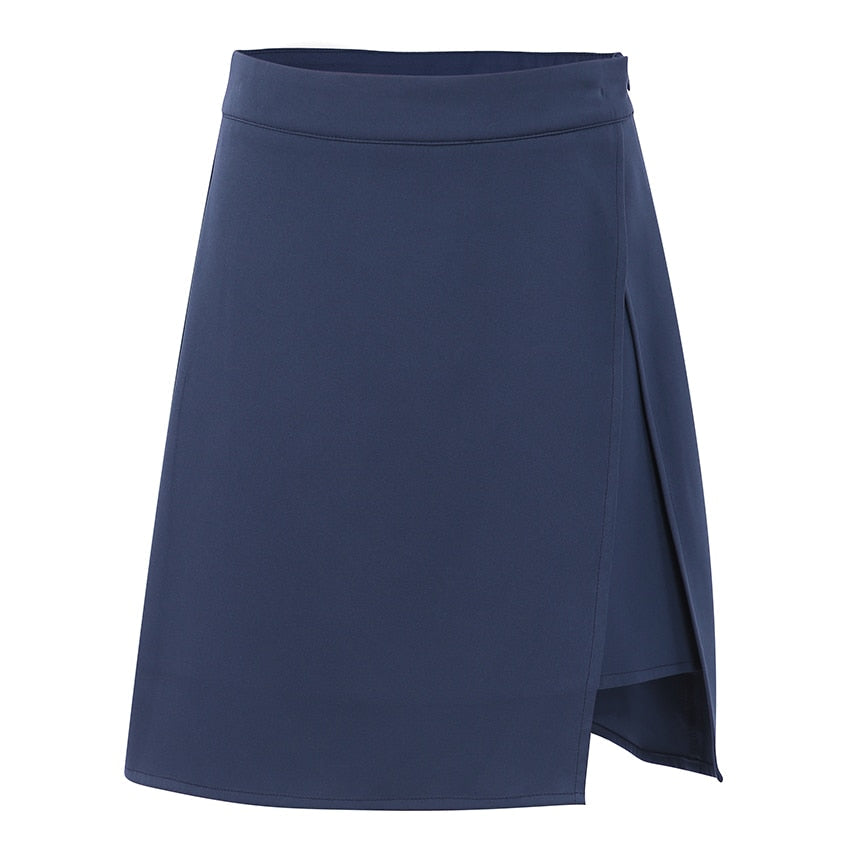 Make a statement with the Valeria Irregular Mini Skirt by Bella Chix. The stunning A-line silhouette flatters your figure while the sexy split design highlights your curves. The high waist and slim fit ensure a comfortable and stylish fit while the irregular hem makes the look truly unique. This blue mini skirt is sure to become your go-to fashion staple.